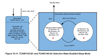 下图来自 tcan1146 的数据手册、它是关于“选择性唤醒启用睡眠模式“的。