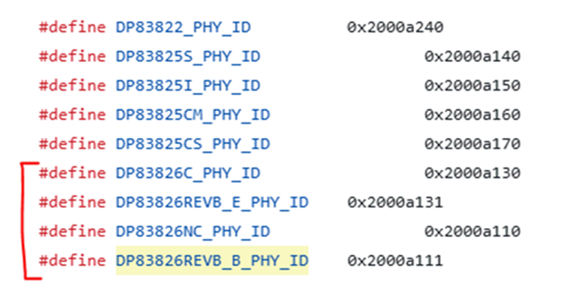 在 DP83826IRHBR 页面中、我们要下载 Linux 驱动程序、 但 PHY_ID 中有 4 个 DP83826 项