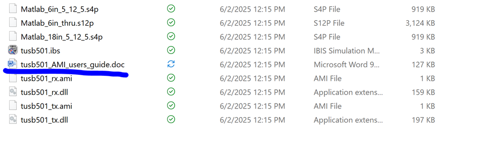 我下载了 TI 网站转接驱动器器件型号 TUSB501TDRFRQ1 的 IBIS-AMI。