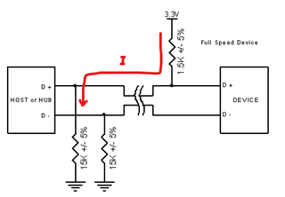 USB D+线路上存在上拉电阻器和下拉电阻器、这会导致额外的功耗。