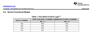 根据数据表、我应该在 B0、B1(SEL =低电平)上有一个对 (TX、RX) 、在 C0、C1 (SEL =高电平)上有一个对。