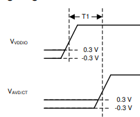 在电源斜坡之前、AVD 和 VDDIO 电位不得超过 0.3V。