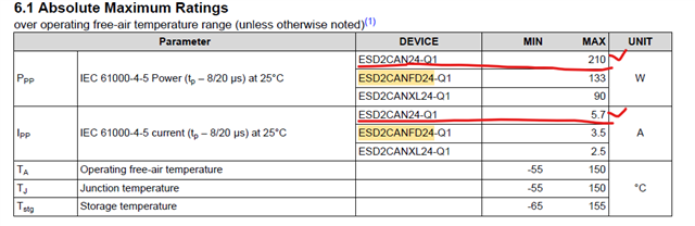 Other Parts Discussed in Thread: TSM24CA-Q1, ESD2CAN24-Q1, ESD2CANFD24-Q1, ESD2CAN36-Q1