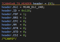 MCAN_WriteTXFIFO(0, &header1, &g_ucADC1Data[g_ucCurrentAdcDataIndex][0]);
