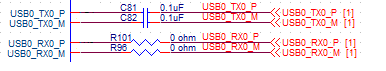 对交换还是极性交换? 由于 USB0_RX0_P/M 上已经有0.1uF 电容、请移除 R96和 R101。