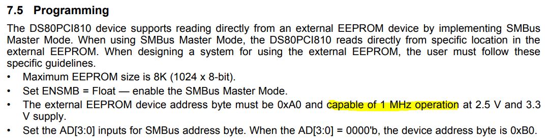 在数据表的 P.18中、EEPROM 应该能够以1MHz 的频率运行、而在6.8节中、总线运行频率显示在280kHz 至520kHz 的范围内。 那么、EEPROM 的速度要求是什么? 在这种情况下 ST M24C08是否起作用?