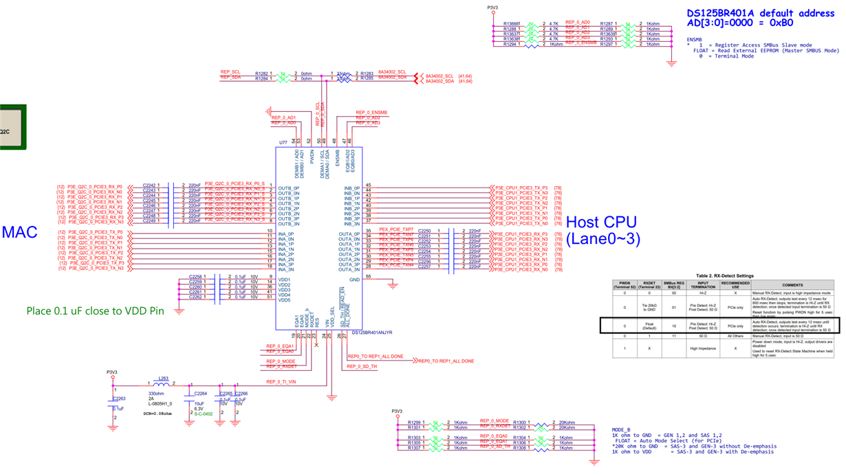 EEPROM 配置中的第一个 DS125BR401A 需要将 READ_EN#直接接地。 我添加了指向应用手册的链接、其中详细介绍了多个器件的 EEPROM 加载连接。