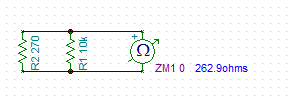 如上所示、如果您有一个270欧姆电阻器与一个10k Ω 电阻并联、则有效电阻仍然小于小电阻。 在本例中、等效电阻为~263欧姆。
