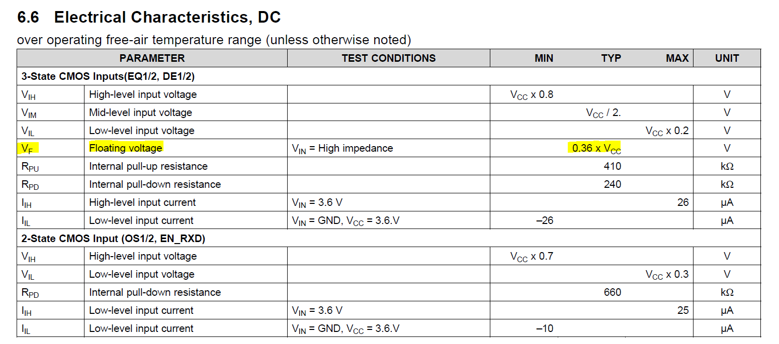 但该规格指出、浮动电压应为 Vcc * 0.36 (典型值)。 VIN=3.3V。 VF 应为1.188V。