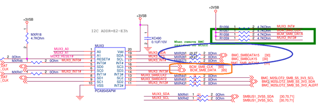 我的客户遇到了一个问题、即 SC3/SD3没有输出。 实际上、我们的器件 TCA9545APWR 是与另一器件 PCA9545A (NXP)的 P2P。 使用 PCA9545A 时、他们不会面临这一问题。 您知道两个器件之间有何不同规格/功能来促成这种不同的输出行为吗? 下面是供您参考的原理图。 (SMBus 频率约为100kHz)