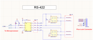 我查看了数据表 SN65HVD1477、其中只提到了一次 RS -422这一术语。 您能否确认我的原理图是否确实配置了全双工 RS 422? 如果没有、我应该对原理图进行哪些调整、以确保其符合 RS -422标准? 此外、我是否需要一个专门为差分对设计的连接器、或者任何连接器就足够了(请注意、RS -422传输发生在两块板之间30cm 以内)? 我当前使用的是 Molex Picolock 连接器(https://www.molex.com/en-us/products/part-detail/5040500991)。
