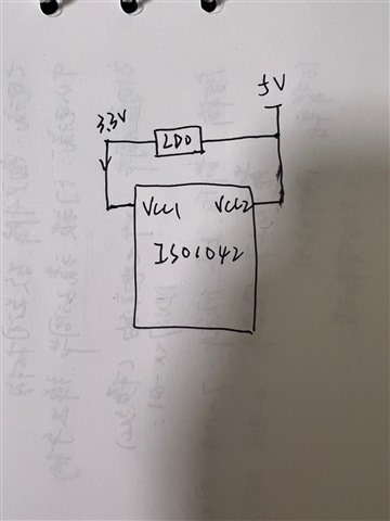 他们想要使用非隔离式电源测试 CAN 功能、如下所示:(VCC2为5V、LDO 使用5V 至3.3V 至 VCC1)