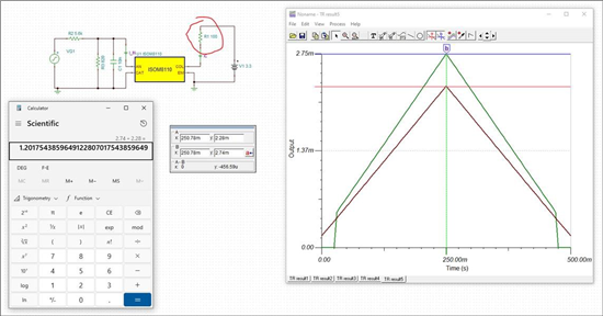 器件型号:ISOM8110客户对该器件感兴趣、并使用给定的 PSpice 模型得出了一些仿真结果。