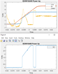请注意、务必监控器件电源、以重现并调试该问题。 我知道您可能通常会监控整体系统电源、但这并不能告诉我 ISOW1044是否同时加电。 因此、它有助于直接监测 ISOW1044的 VDD。