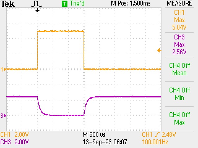 感谢您分享输出脉冲的详细波形、连同电压和时间标度、这有助于我更好地了解这个问题。 请允许我在相同的加电条件下测试 EVM 以重现问题、并就此问题与您联系。