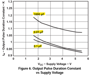 [引用 userid="190215" URL"~/support/logic-group/logic/f/logic-forum/1160343/sn74lvc1g123-what-are-the-capacitor-and-resistor-value-for-150ms-tw/4364207 #4364207]Q2。 器件数据表 显示了第8页上的系数 K 特性图。