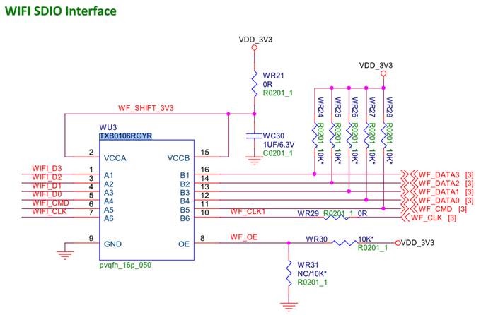 A1直接连接至 wifi 芯片、无需上拉电阻器。