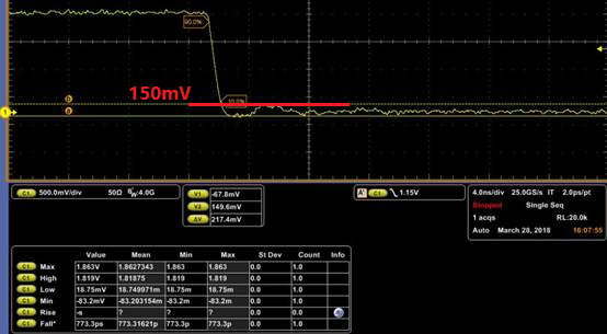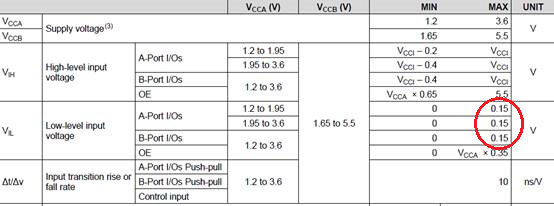 我的客户对 TXS0108E 有一个问题。 VIL 非常低、数据表中的最大值约为0.15V。 在客户电路板上、电压降至0V 后、峰值为0.15V 的小幅上升。