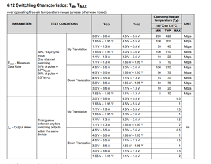 同一器件内任意两个开关输出之间的输出偏斜要求小于1.5ns。 我的 VCCI 和 VCCO 必须为3.3V、数据速率必须为100Mbps。