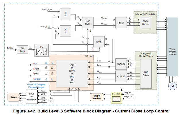 与配合使用的器件 Universal Lab Project 在上 F280025C LaunchPad 和 DRV8329A EVM PMSM 电机控制。 我当前正在测试 DMC_LEVEL3 并面临相电压值问题。