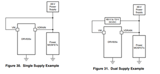 我有一个关于 DRV8305-Q1栅极驱动器 IC 中电荷泵运行的基本问题。 在我的应用中、驱动器的 PVDD 输入电压直接来自18V 至36V 范围的电池包。 该输入不受调节、可能会随着电池放电而变化。 我知道 PVDD 可以支持宽范围(4.5V 至45Vabs_max)、我的 H 桥逆变器(由 DRV8305-Q1驱动)设计为在此电池范围内运行。