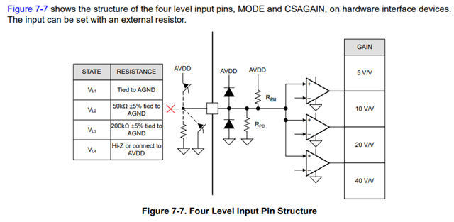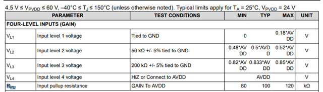 对于四电平输入引脚、IC 内部的上拉和下拉电阻是多少? 您可以在工作台上再次确认吗?
