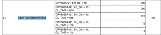 https://e2e.ti.com/support/motor-drivers-group/motor-drivers/f/motor-drivers-forum/1502645/drv8889-q1-the-min-and-typ-value-of-open-load-detection-time
