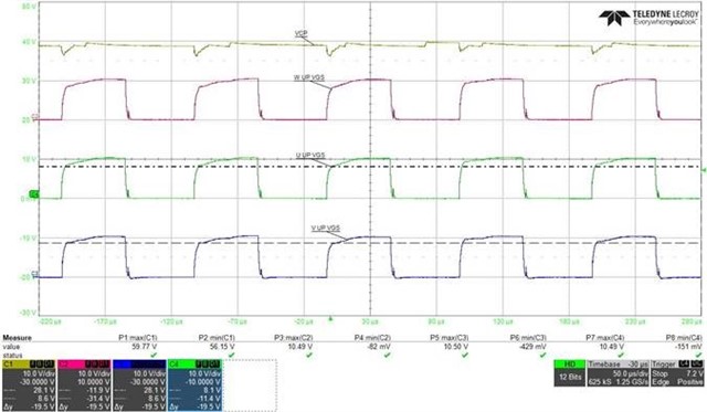d.关于零序列时的 VGLS、电压具有三伏压降、并且 VGS 接近方波(VGS =10.5V)。 可以 通过增加 VGLS 外部电容来减少压降。
