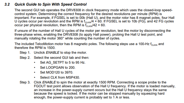 我正在使用 DRV8308 驱动器 通信 MFA0500 高速鼓风机(由 Airfan 提供) 。 我已经成功验证了中的电机是否正常运行 开环模式 DRV8308。 但是、我在尝试运行电机时遇到了问题 闭环控制模式