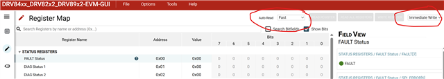 在“Register Map“页面中、确保选择 Auto Read Fast 以进行读取和立即写入。 谢谢你。