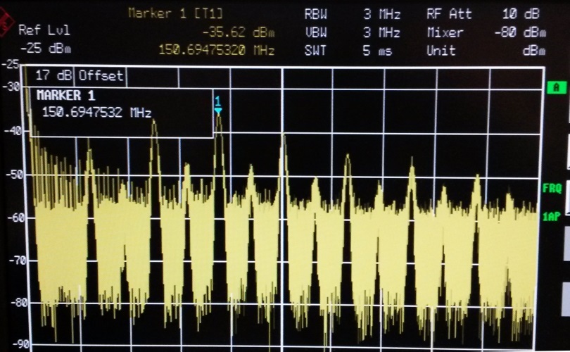 我和我们的设计师谈过,您测量的辐射峰值很可能是我们设备中的一个内部时钟的谐波。