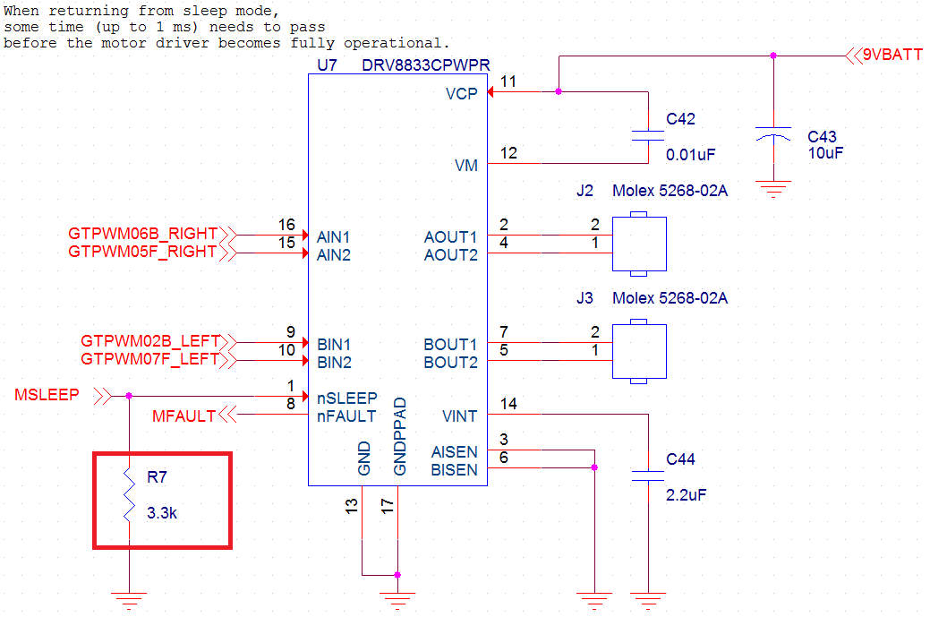 所以我希望在休眠引脚上添加一个强下拉电阻器(2.7k欧姆),将其用作"启用"引脚,而不是在每个PWM引脚上添加4个下拉电阻器。