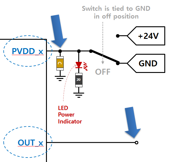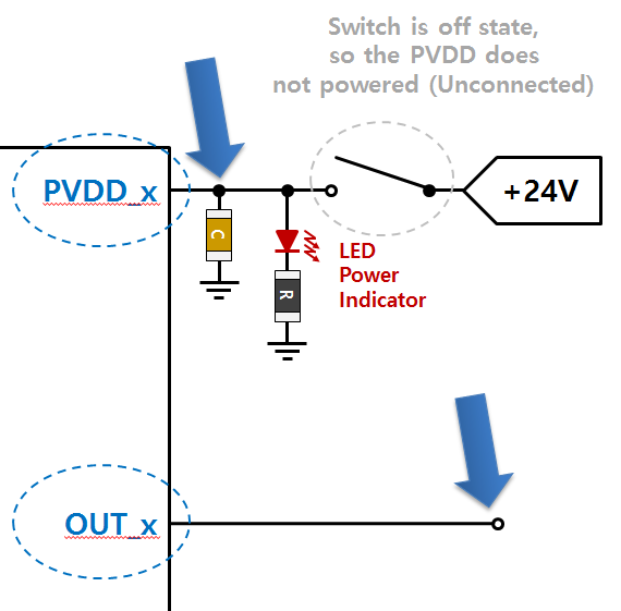 开关连接在接地位置,接在接通位置,接在接通位置的+24V。