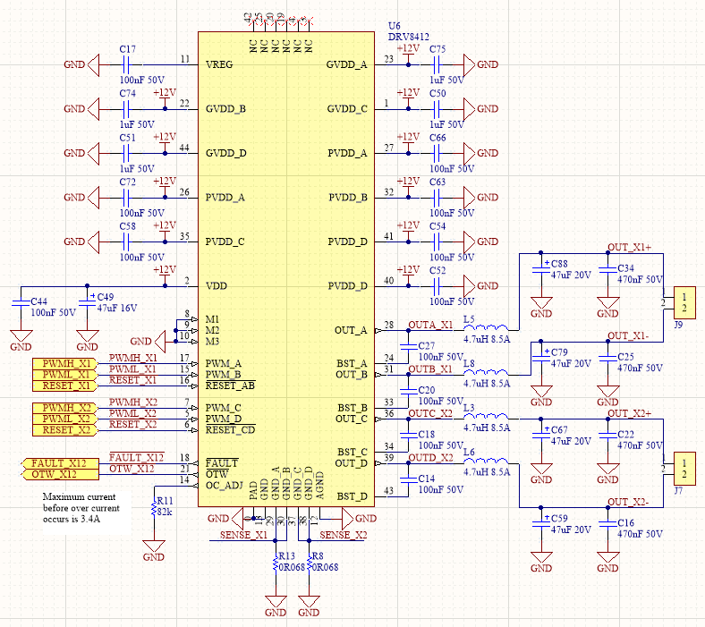 我想说,我正在使用这个电容器值,因为我在 DRV8412的开发板上看到了这个电容器值。