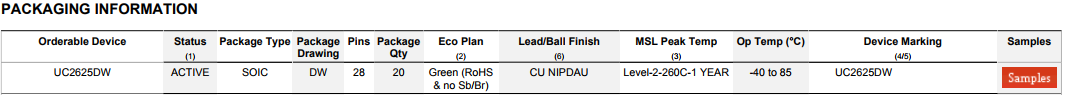 我当前遇到的另一个问题是设备运行时的临时工。 我订购了UC2625DW,在数据表中,它显示它们从-40C运行到105C,但在包装信息以及我要发送它的链接中,显示它从-40C运行到85C。