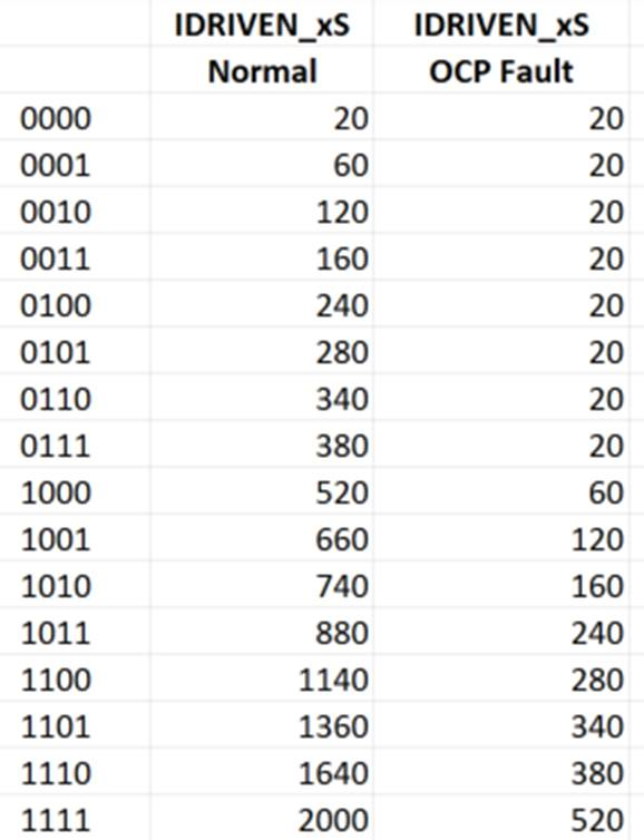 以这种方式禁用外部MOSFET时,驱动器会自动使用栅极驱动电流的较低设置,而不是编程的IDRIVE设置。 此设置允许缓慢关闭任何可能存在的大电流,以最大程度地减少系统中寄生电容造成的任何电感反冲。