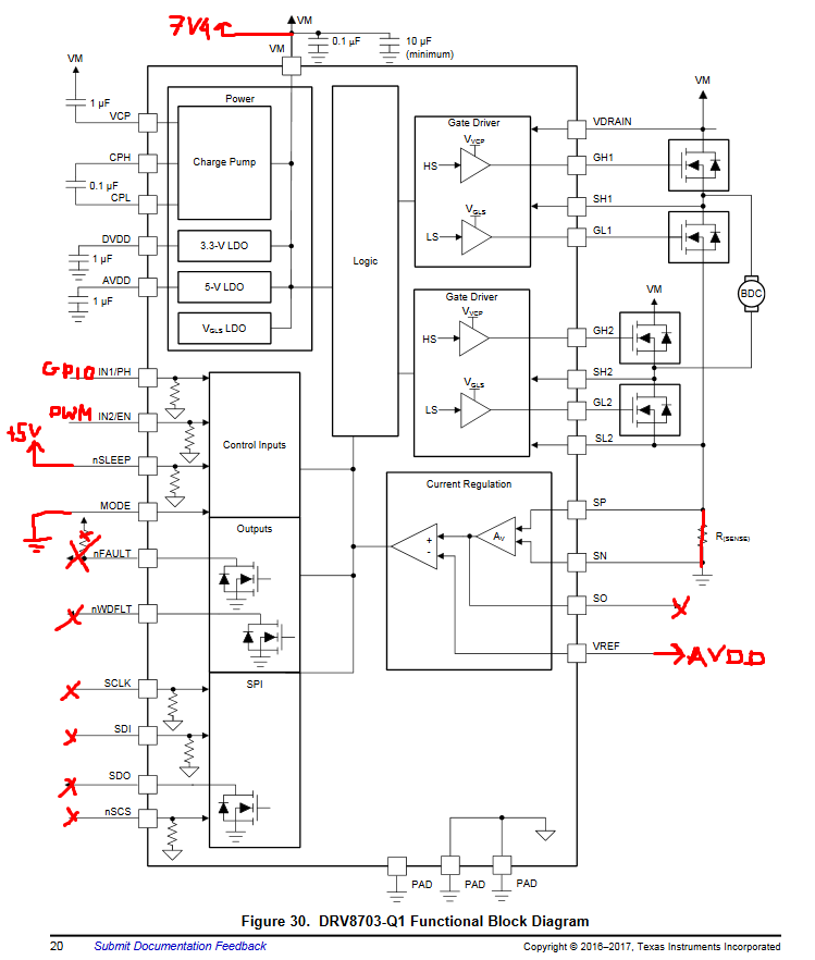 编辑。 VGSL为3.5V,VM为7.5V。 驾驶员相当正确地切换下安全门-使用PWM=0时电机正在制动(当尝试移动电机时,使用PWM=PWM 100 % 时,电机可以自由移动。