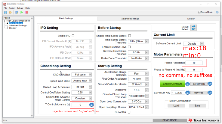当我尝试使用小数点将相位电阻设置为小于1时,输入被拒绝,当我使用逗号时,它恢复为0。