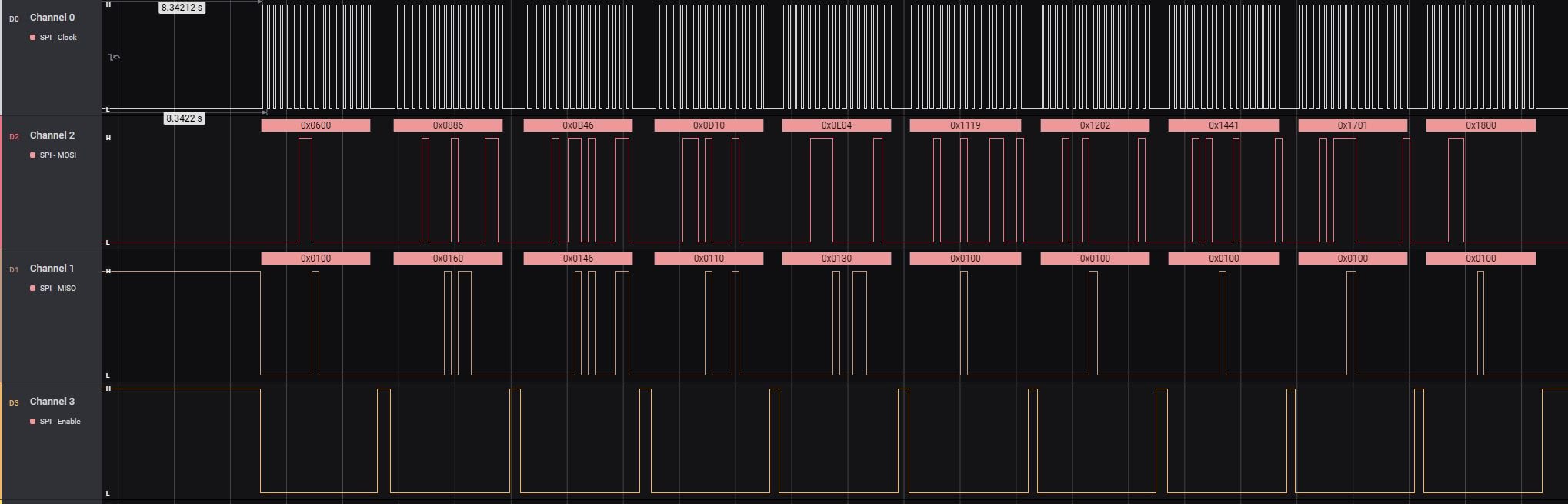 下面是我从 SPI 线路中收到的内容、您可能可以指出、例如、如果我有一个错误的写入命令。 图片。