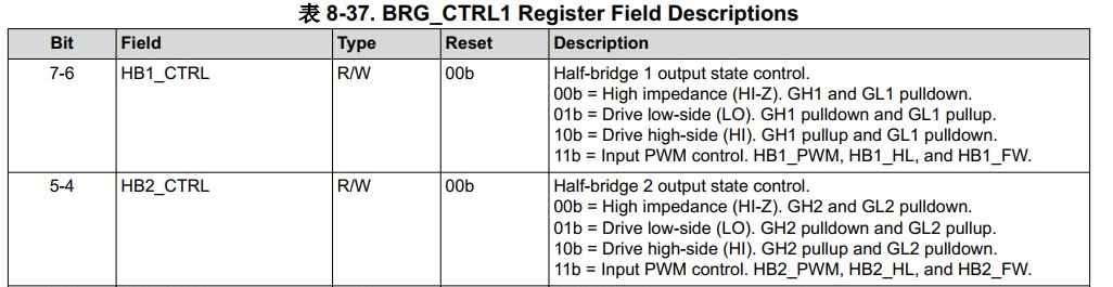 [quote userid="496057" url="~/support/motor-drivers-group/motor-drivers/f/motor-drivers-forum/1278550/drv8718-q1-how-to-set-hb1_ctrl-and-hb2_ctrl-to-hi-z-at-the-same-time 能否帮助分享如何同时将 HB1_CTRL 和 HB2_CTRL 设置为 Hi-Z?