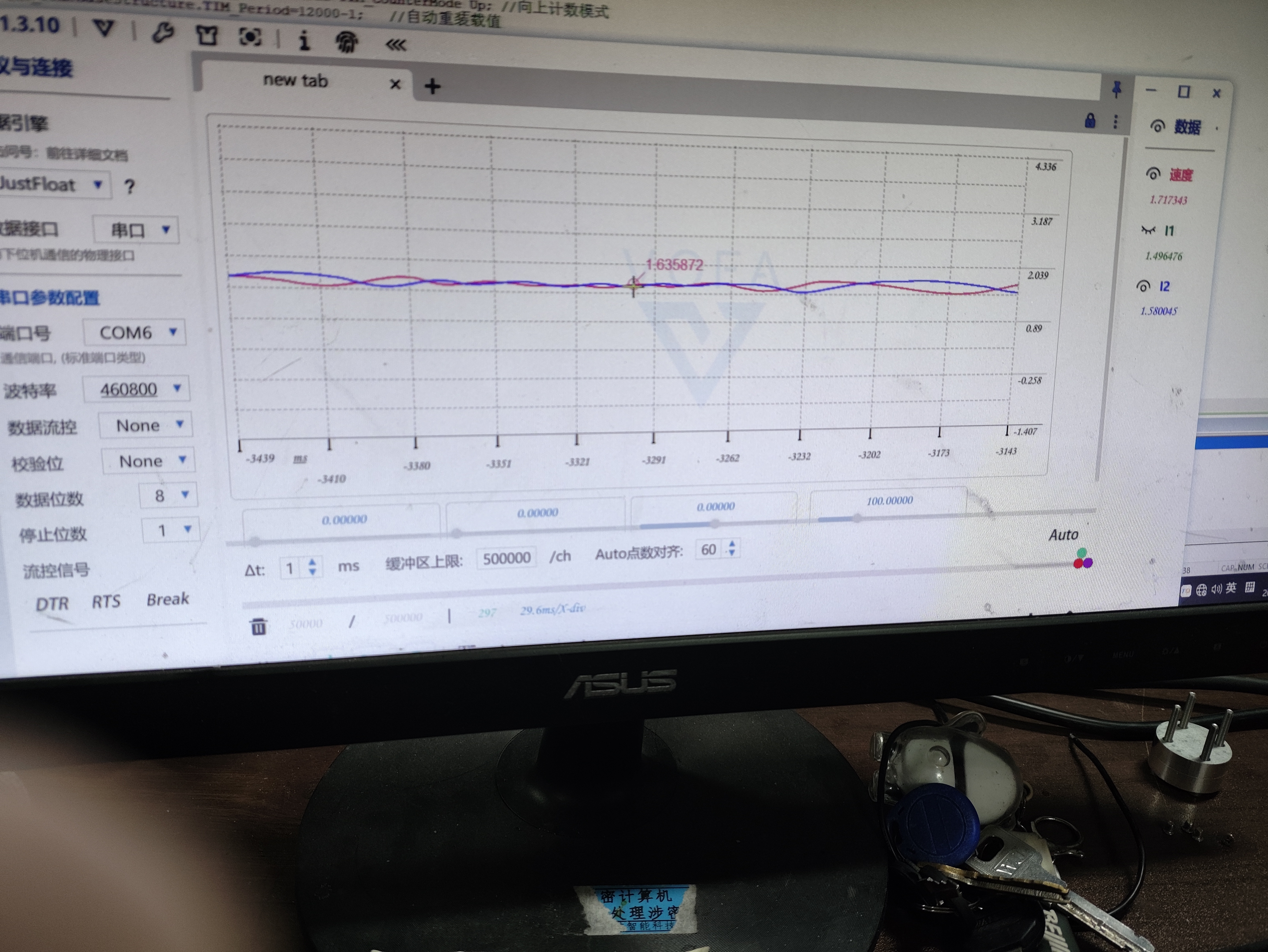 使用的是 TI 官方开发板、只有感应电阻器替换为20-mΩ 电阻器、捕获的电流约为0.4A。理论上、波形应为正弦波、但当前捕获的电流如下: