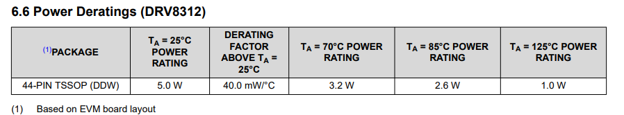 现在、我们要将 BLDC 电机从3W 升级到17W。 但在 DRV8312DDWR 产品说明书中、建议功率降额、如下所示、