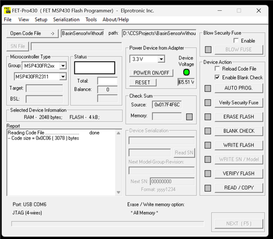 我需要使用 MSP FET 仿真工具和 FET-Pro430刷写 MSP430fr2311、但收到错误消息: