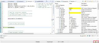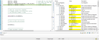 我的 ADC 在 SMCLK 下运行, ADCPDIVx 设置为00除以1, ADCDIVx 设置为010除以3。 这使得 ADCCLK = 3.333MHZ。