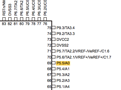/*配置GPIO (5.5 A0)*/ MAP_GPIO设置外围模块功能输入引脚(GPIO_PORT_P5, GPIO GPIO第三模块功能);
