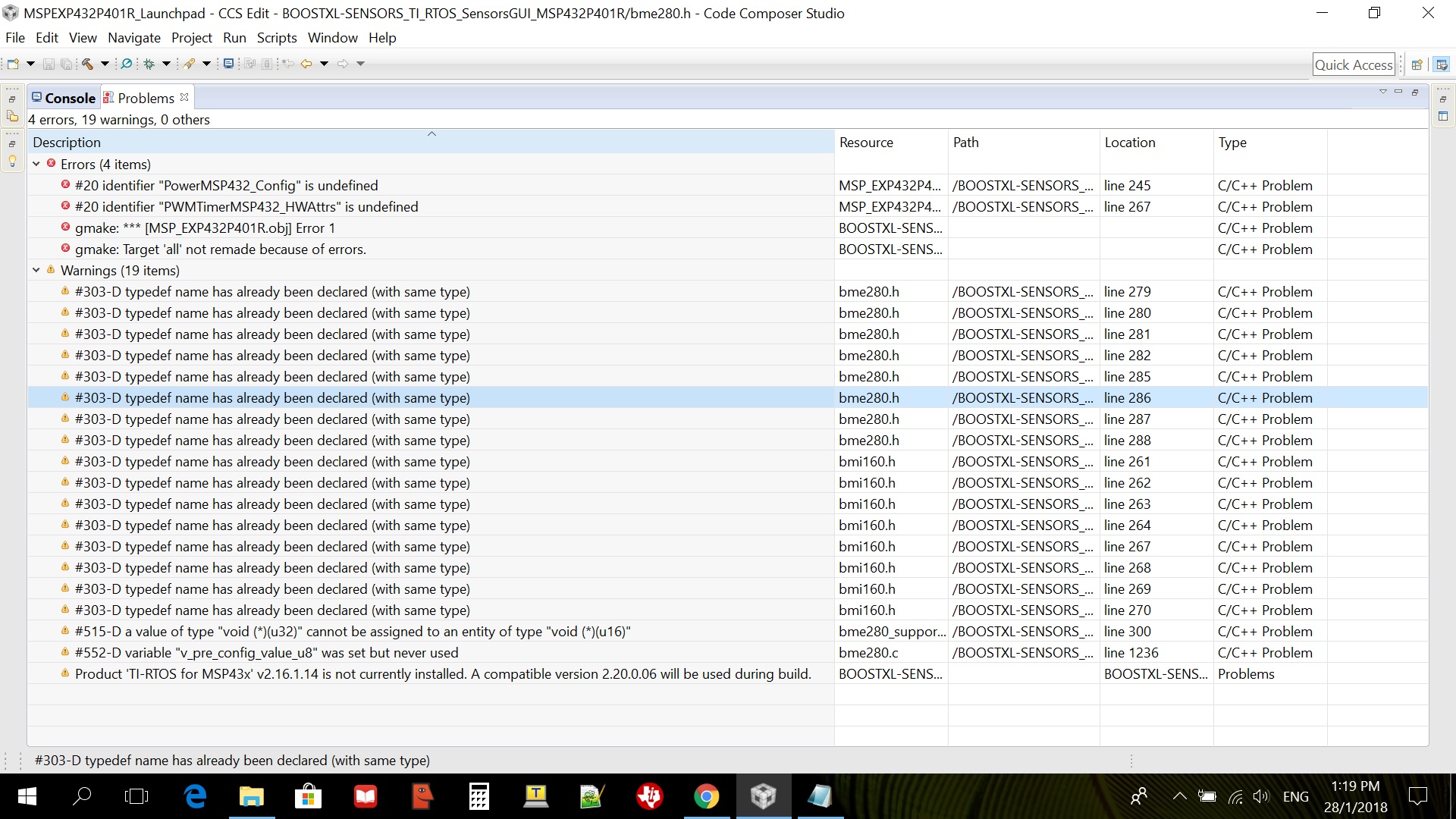 我正在从 BOOSTXL-传感器_TI_RTOS_SensorsGUI_MSP432P401R示例程序中获取这些构建错误。 我正在使用MSP-EXP432P401R Launchpad,CCS 7.2 版本0和编译器版本TI v 16.9 .3.LTS。 如何解决这些错误?