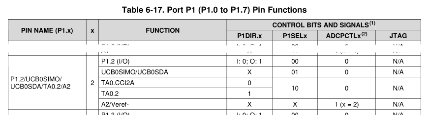MSP430FR2433‘s PXSEL0和PXSEL1可以选择I/O功能。,但如果此引脚‘s功能 大于4功能,,则可以选择1.2 ,UCB0SIMO/UCB0SDA/POLA/A2/Veref-。0.2
