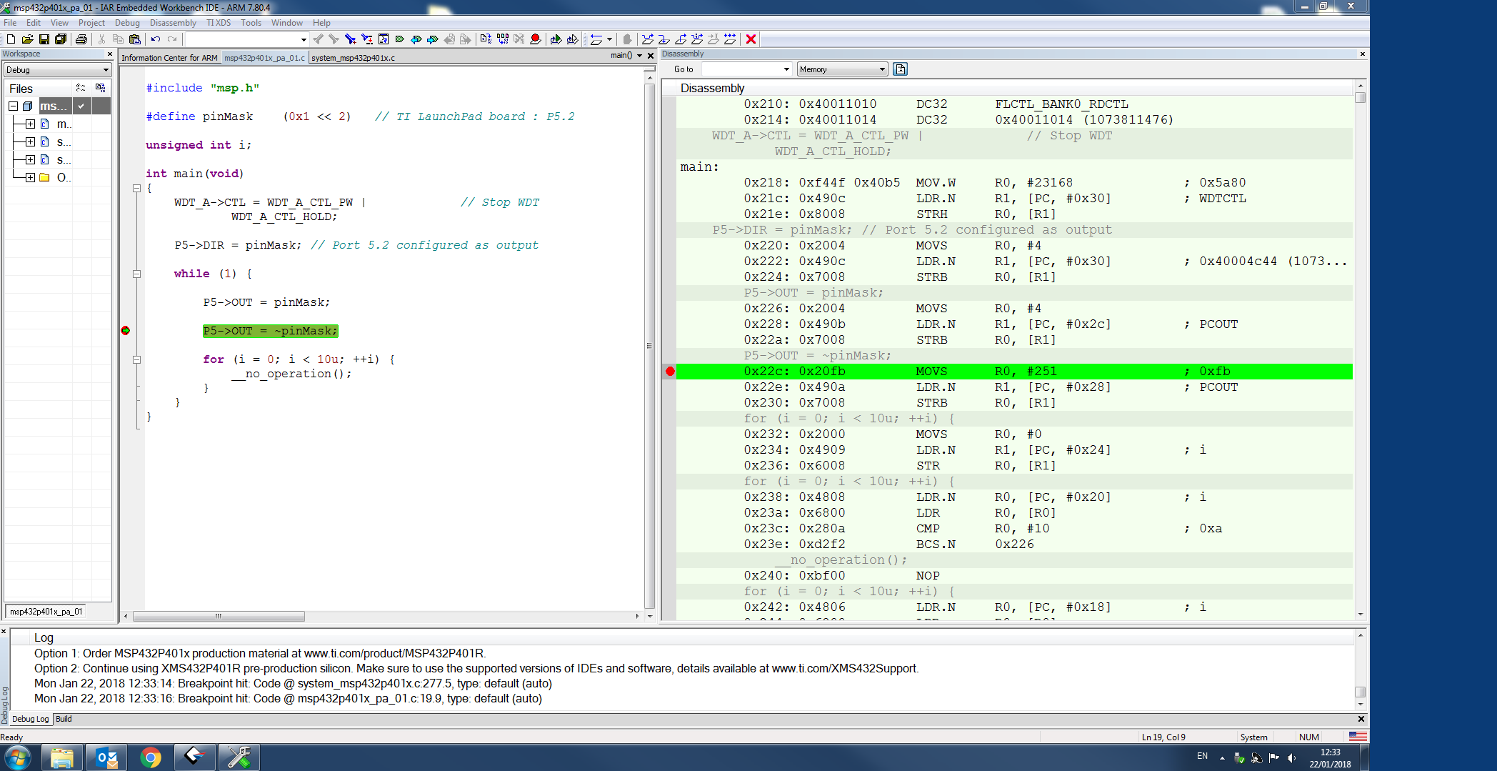 优化器(-Opspeed)可能会删除加载内存,甚至可能会将单独的寄存器分配给pinMask和(~pinMask)。