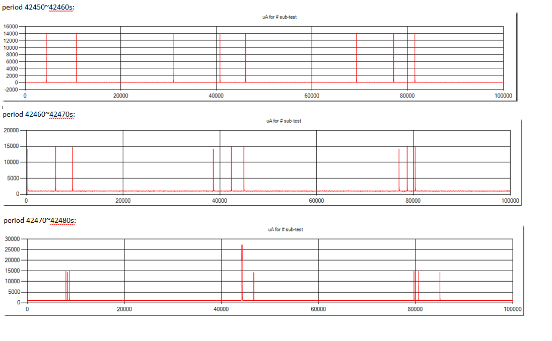 测试期间没有进行射频通信,因此测试的设备在正常唤醒循环中运行------- >睡眠-------- >唤醒------- >睡眠。
