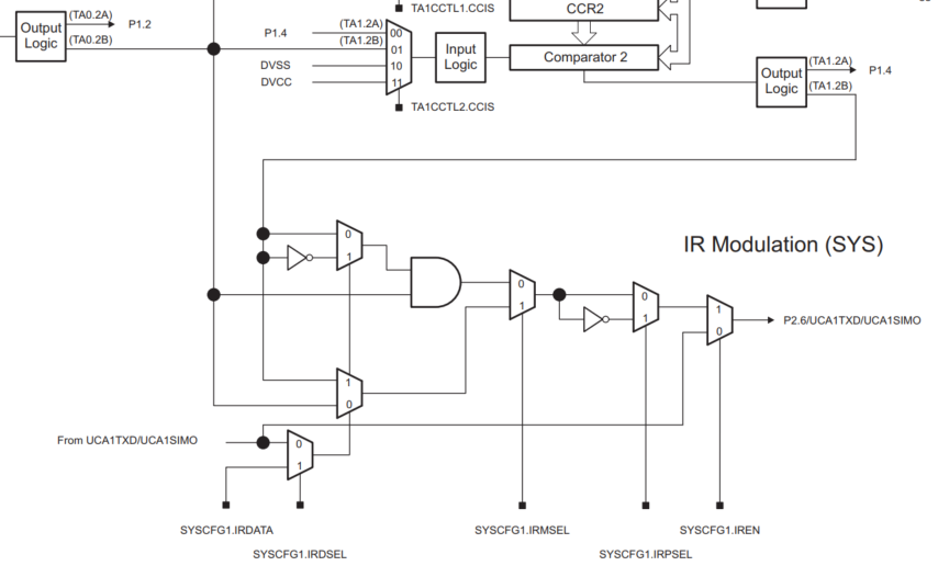感谢Mitch的建议。 我实际上一直在使用这些资源和其他一些资源来设计我的代码。 我无法弄清楚的部分是slau445g用户手册第53页中所述的内置IR模块的功能。